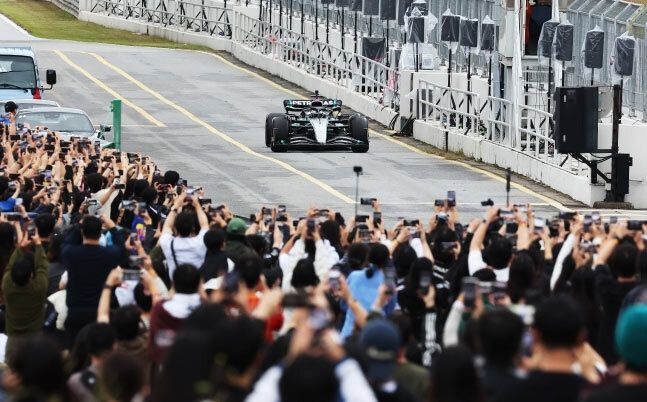 世界最大のモータースポーツ、フォーミュラワン(F1)のマシンが12年ぶりに韓国のサーキット(カーレース場)を駆け抜けた。F1メルセデス-AMG・ペトロナス所属のドライバー、バルテリ・ボッタス(36)=フィンランド=が12日、2022年に実際にF1レースに使われた車で京畿道竜仁市エバーランドのスピードウェイにあるトラックを走った。モータースポーツ・ファンをターゲットにした「Peaches Run Universe(ピーチス・ラン・ユニバース)2025」というイベントで、3回にわたってサーキットを4-5周する「ショーラン(デモ走行)」を披露した。実際のレースではなかったが、F1カーがエンジンの爆音を立てながら矢のように通り過ぎるたび、ものすごい歓声が沸き起こった。韓国のサーキットをF1マシンが走ったのは、2013年に全羅南道霊岩郡の韓国インターナショナルサーキット(霊岩サーキット)で行われたF1コリア・グランプリ以来だ。