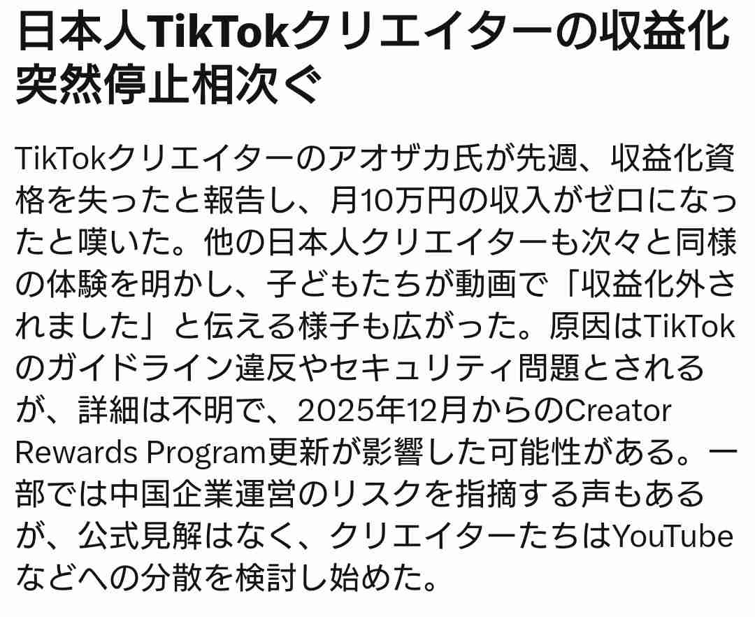 TikTok収益剥奪問題、日本人クリエイターに波及(2025/12/10)|SNSのバズまとめ - Yahoo!リアルタイム検索