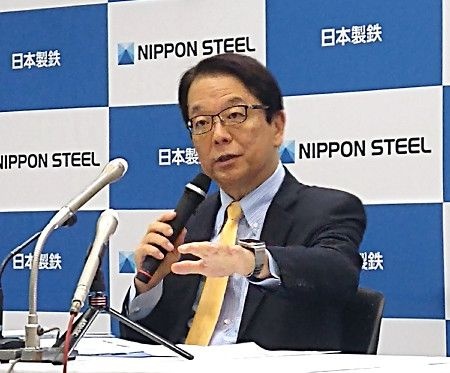 東京都内で記者会見した森高弘副会長は、USスチール買収による今期の増益効果を800億円程度と説明。