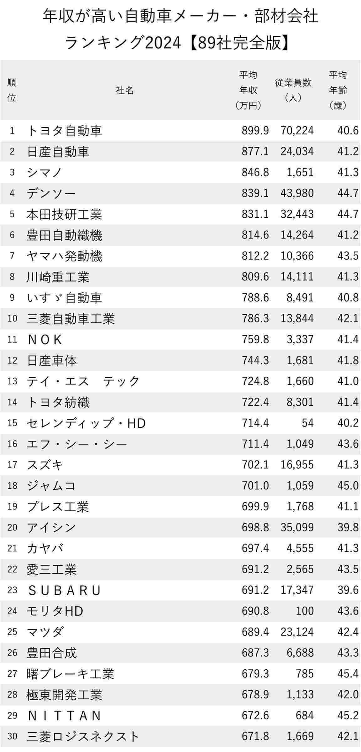 年収が高い自動車メーカー・部材会社ランキング2024【89社完全版】トヨタ・ホンダ・日産の「年収序列」は?1000万円企業が不在の衝撃