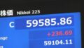 22日の東京株式市場で、日経平均株価の終値は前日比236円69銭高の5万9585円86銭となり、史上最高値を更新した。