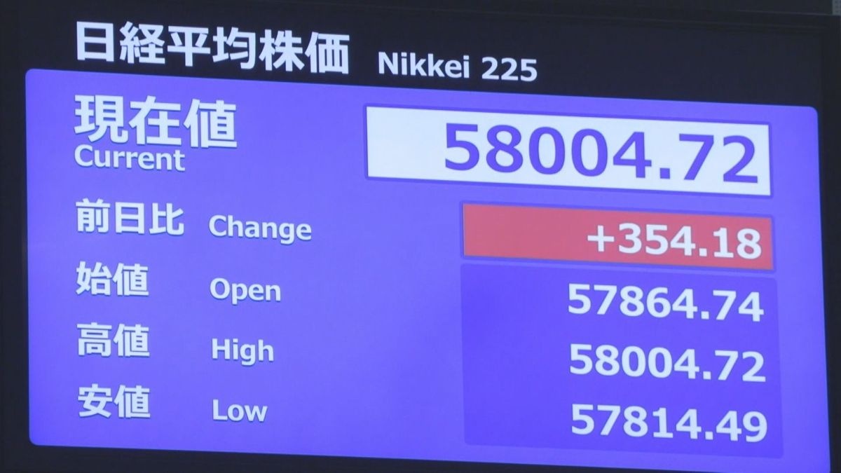 日経平均株価、取引中で初めて5万8000円台 3営業日連続で最高値更新