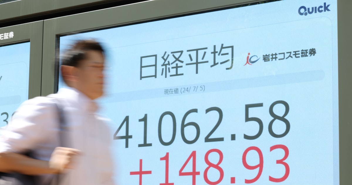 東京株式市場で5日、日経平均株価が一時前日比200円近く上昇して4万1100円台を付け、取引時間中の最高値である3月22日の4万1087円75銭を上回った。