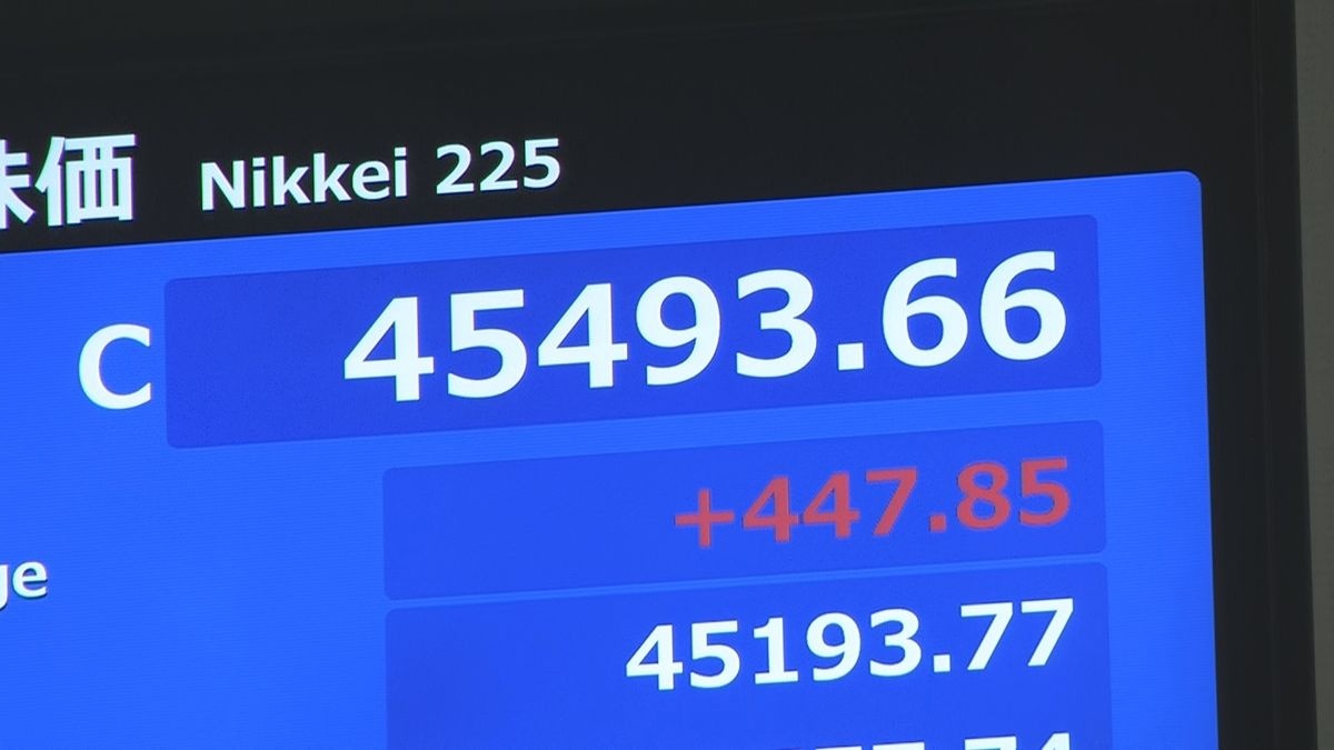 きょうの日経平均株価は先週末より447円高い4万5493円で取引を終え、終値としての最高値を更新しました。最高値更新は先週の木曜日以来です。