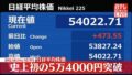日経平均 初の5万4000円台を突破 一時800円以上値上がり
