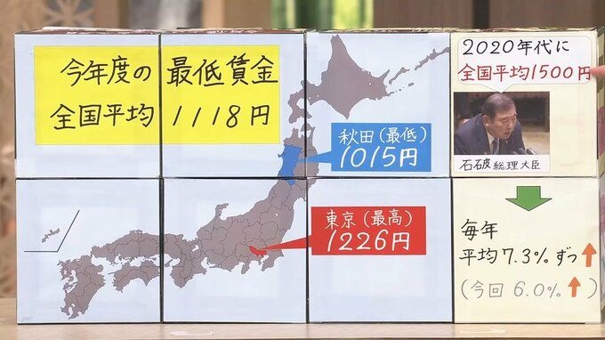 ただ、石破政権が掲げている「2020年代に全国平均1500円」という目標を達成するためには、毎年平均7.3%ずつ上げていく必要があるので、6%では届きません。