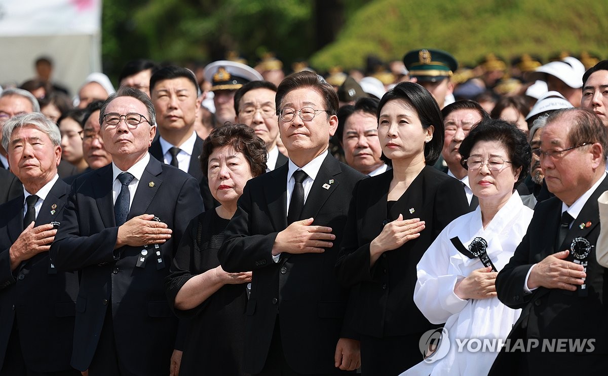 国立墓地の国立ソウル顕忠院で開かれた式典で李大統領は、顕忠日について、国民と国家が危機に直面したときに、自らを犠牲にした人たちを記憶し責任を果たすためのものとし、「奪われた国権を取り戻すために命を捧げた独立運動家たちや、祖国を救うために戦場に出た軍将兵たちや若者がいた。独裁の抑圧に屈せずに民主主義のために戦った多くの人たちがいた」と振り返った。