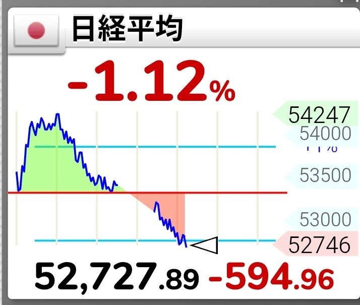 日経平均、500円超安=東京株式(時事通信) - Yahoo!ファイナンス2日の東京株式市場で、日経平均株価が前営業日比500円超安となった。...finance.yahoo.co.jp - 2 : 2026/02/02(月) 13:33:46.71 BE:668024367-2BP(1500)