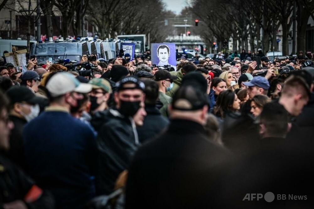 殺害された仏極右活動家を追悼 厳重警備下のリヨンで数千人行進
