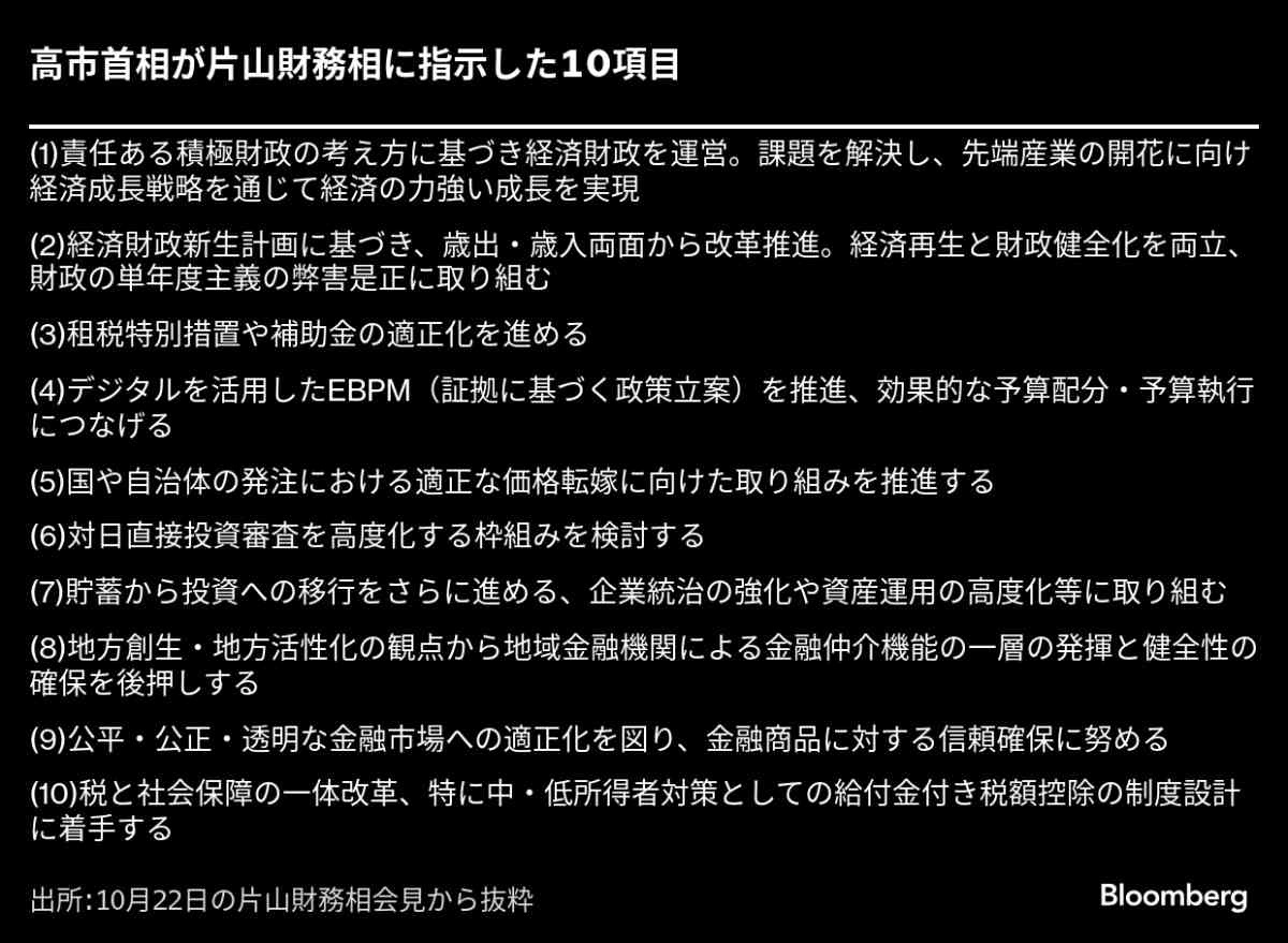 飲食料品への消費減税、「真摯に議論していくことになる」片山さつき財務相は24日、経済対策の策定に伴う今年度補正予算について、財源が足りなければ国債を増発して対応する考えを示した。ブルームバーグなどとのインタビューで述べた。