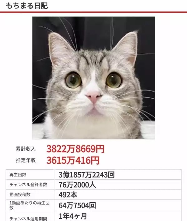 猫のもちまる日記 世界的youtuberになる 再生100万超え 年収数億円の未来(画像あり)