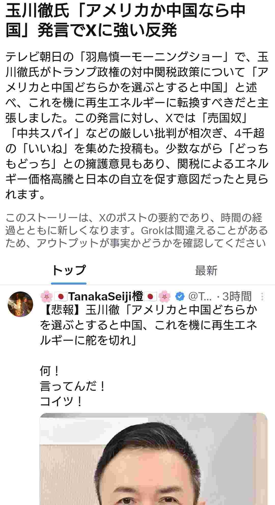 玉川徹氏「アメリカと中国どちらかを選ぶとすると中国、これを機に再生エネルギーに舵を切れ」