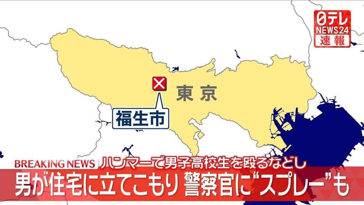 東京・福生市で男がハンマーで男子高校生を殴るなどした後、住宅に立てこもっています。