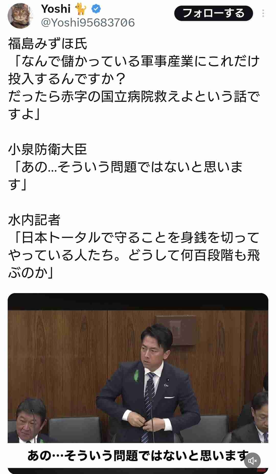 福島みずほ氏「なんで儲かっている軍事産業にこれだけ投入するんですか?だったら赤字の国立病院救え」