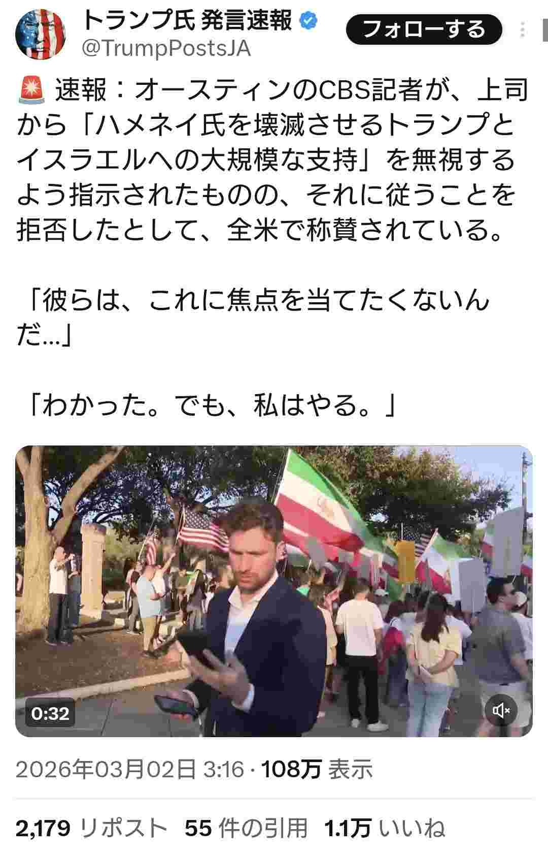 米CBSの上司「トランプとイスラエルを支持する集会は無視しろ」 →記者「いや報道するわ」