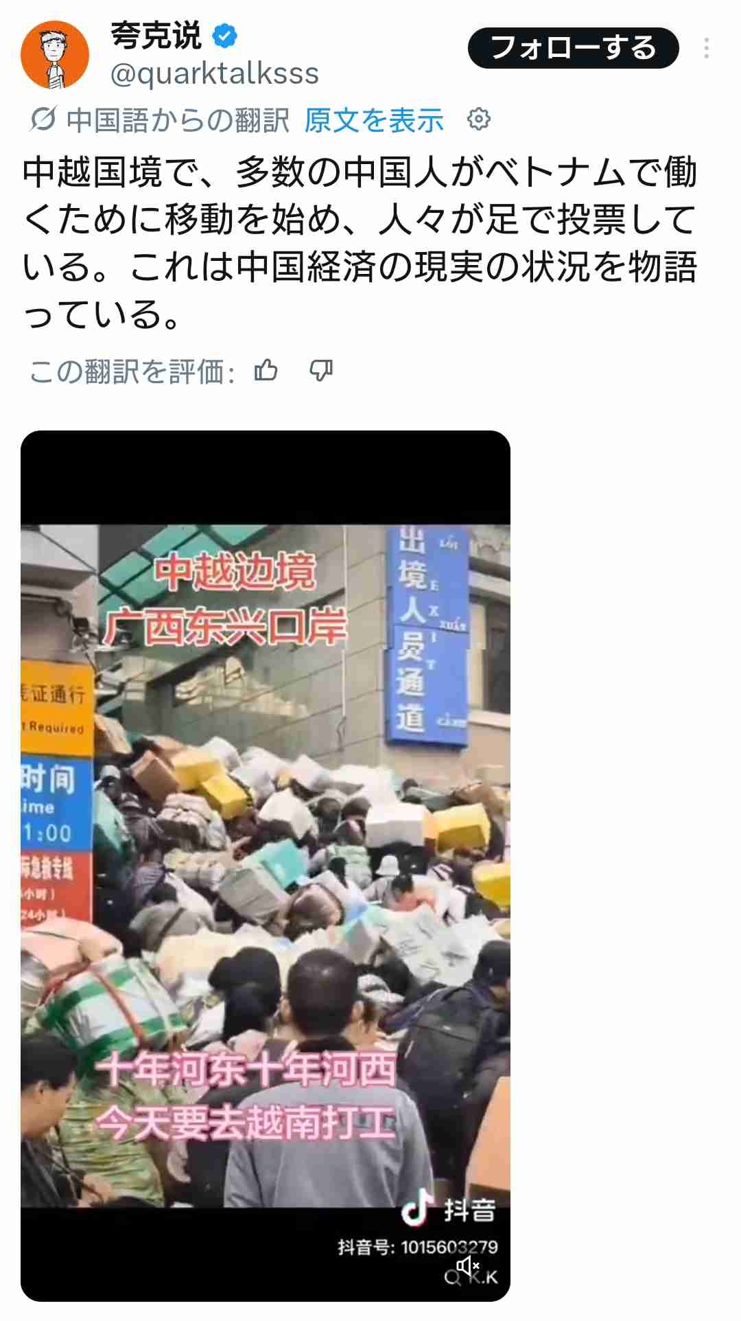 経済崩壊の中国にて、多数の中国人がベトナムで働くために移動を始める