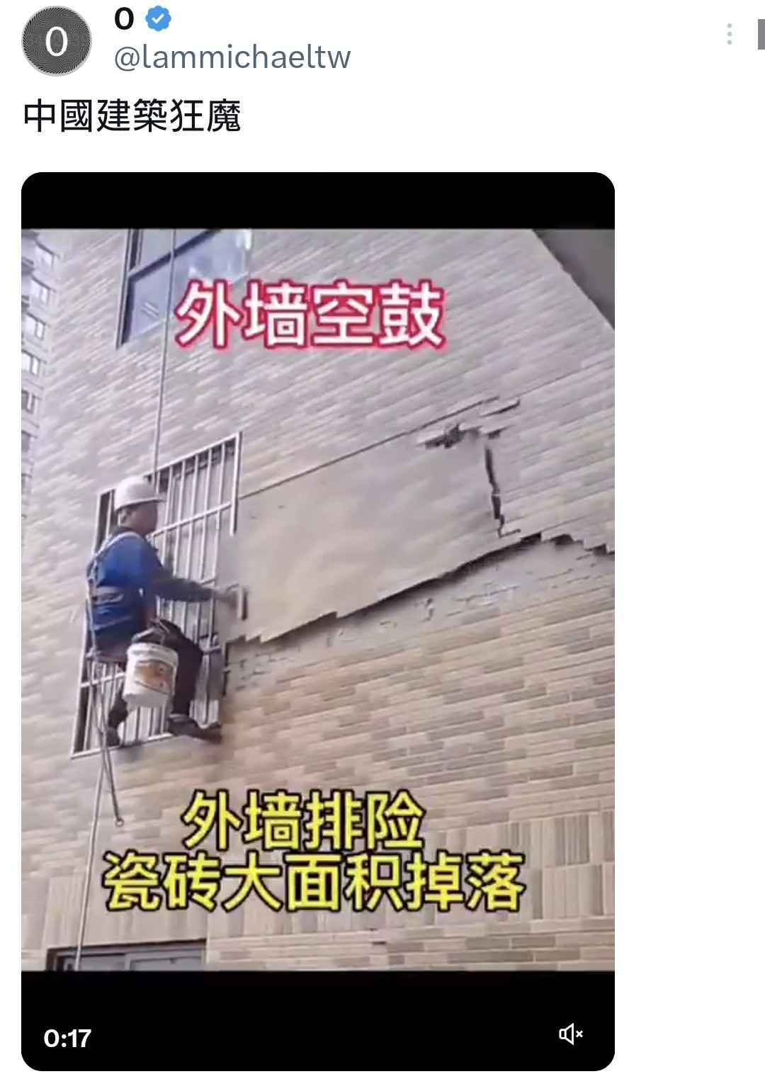 - 外壁が剥がれるくらい中国のおから建設では当たり前だけど?