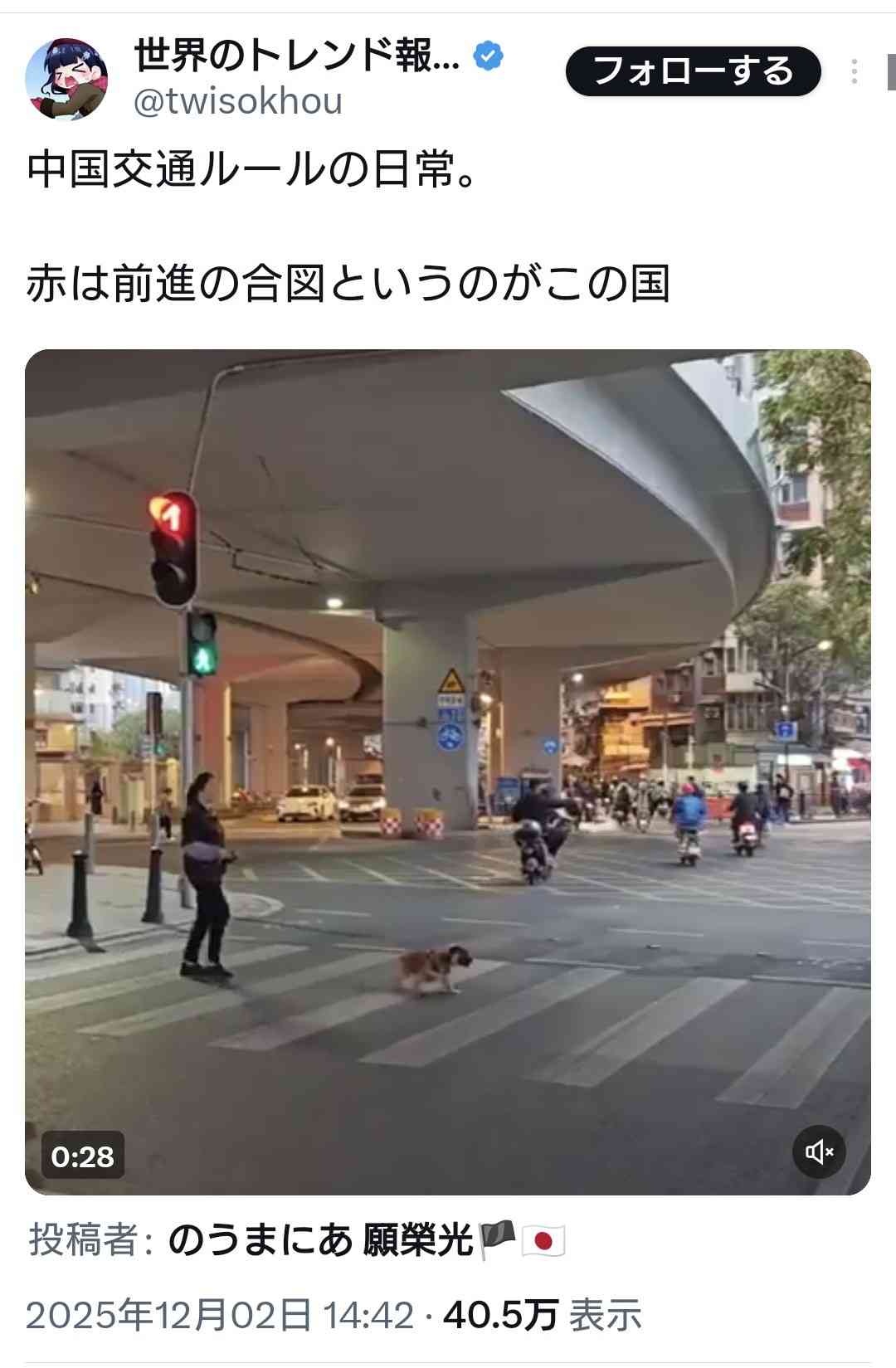 赤信号は前進の合図というのが中国交通ルールの常識