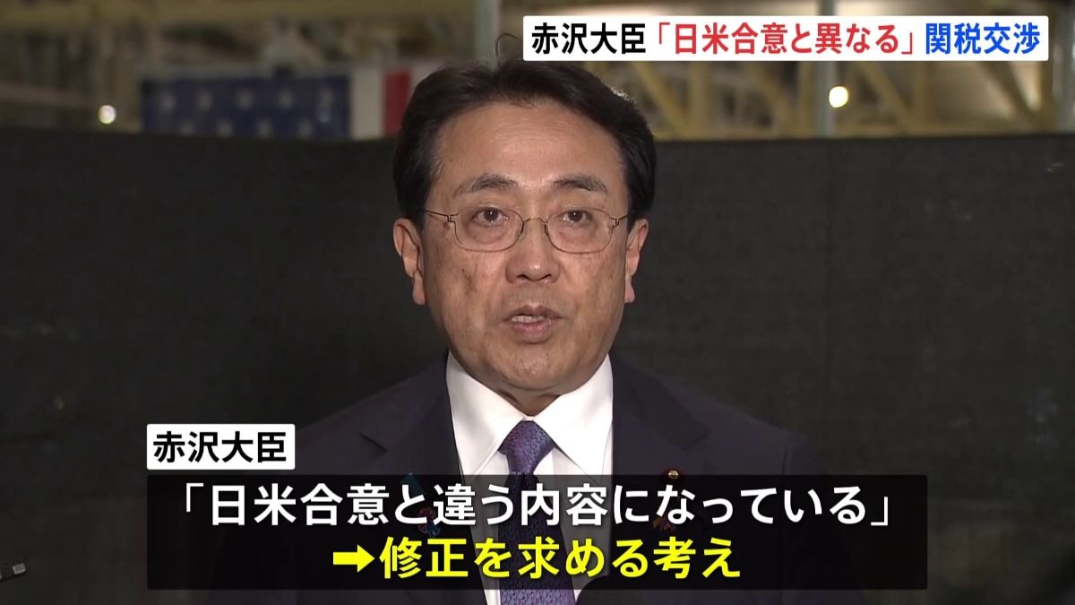 アメリカ政府は5日、公表した連邦官報に掲載予定の文書で日本からのすべての輸入品に対して15%の相互関税を既存の関税に上乗せして課すと記載しましたが、赤沢大臣は「日米合意と違う内容になっている」と指摘し、修正を求める考えを示しました。