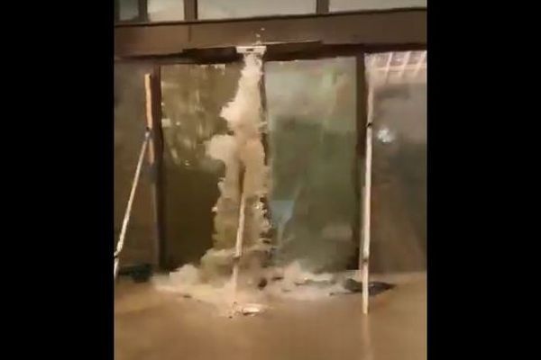 超大型台風「ラガサ」により、香港のホテルのガラスが破壊され、大量の海水が流入【動画】