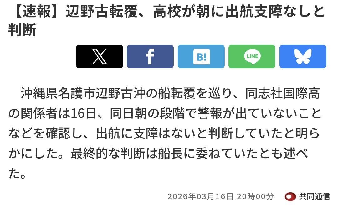 高校の判断に問題があり、運航団体左翼活動家には責任はないということか。切り離してきたな。