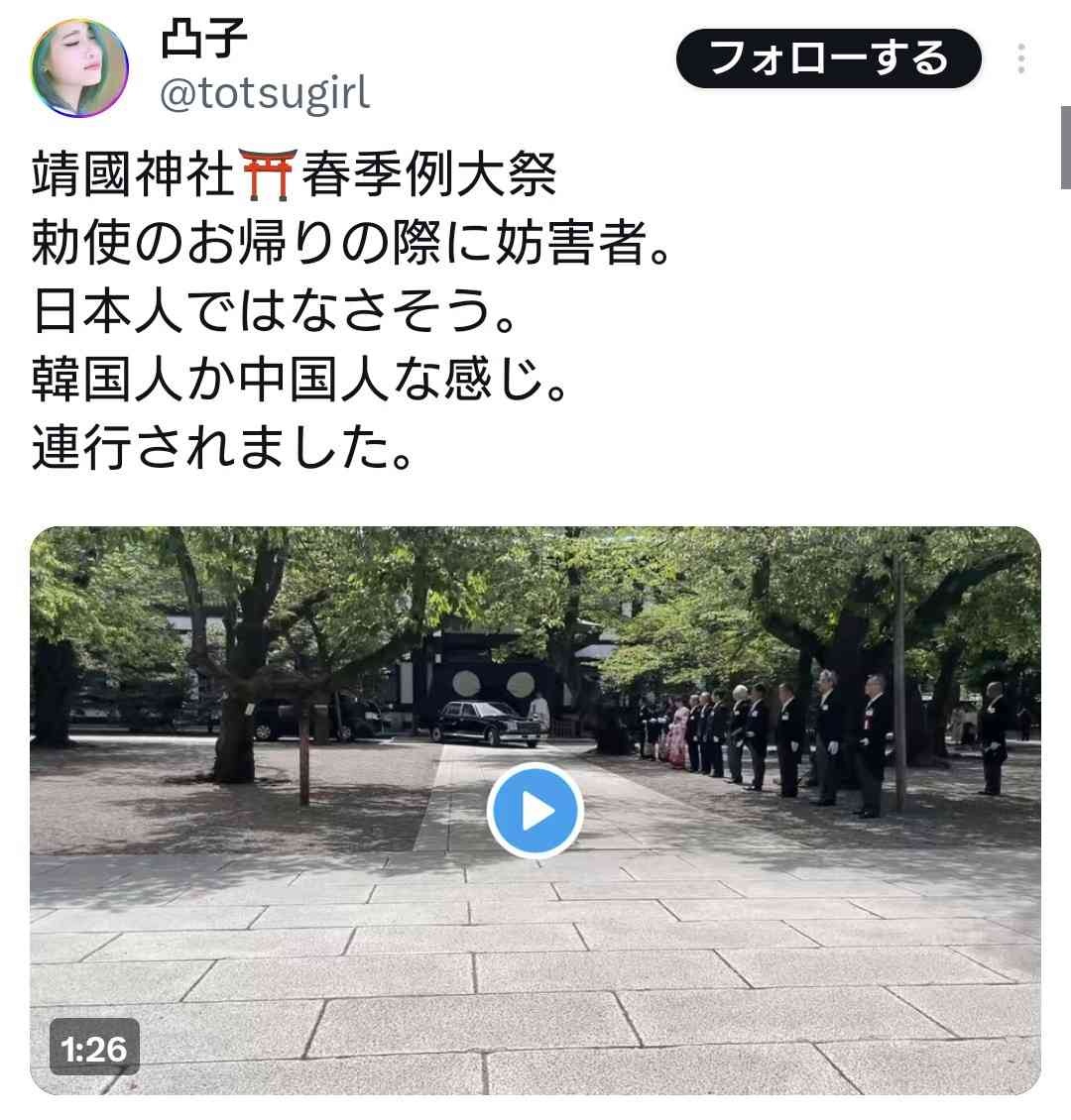 靖國神社⛩春季例大祭にて基地外パヨクが発生