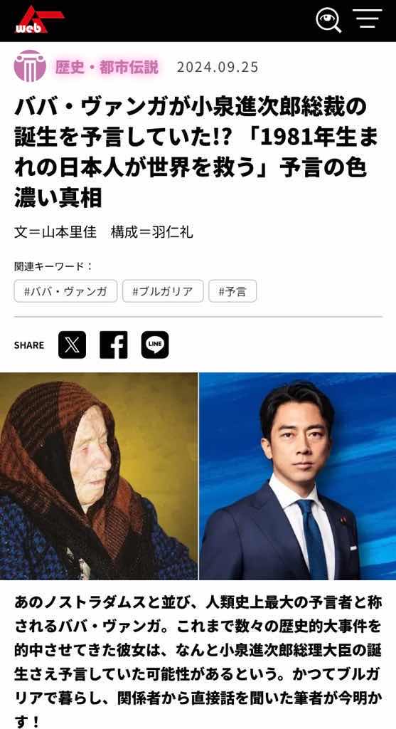 預言者ババ・ヴァンガ「小泉進次郎が世界を救う」月刊ムー😢