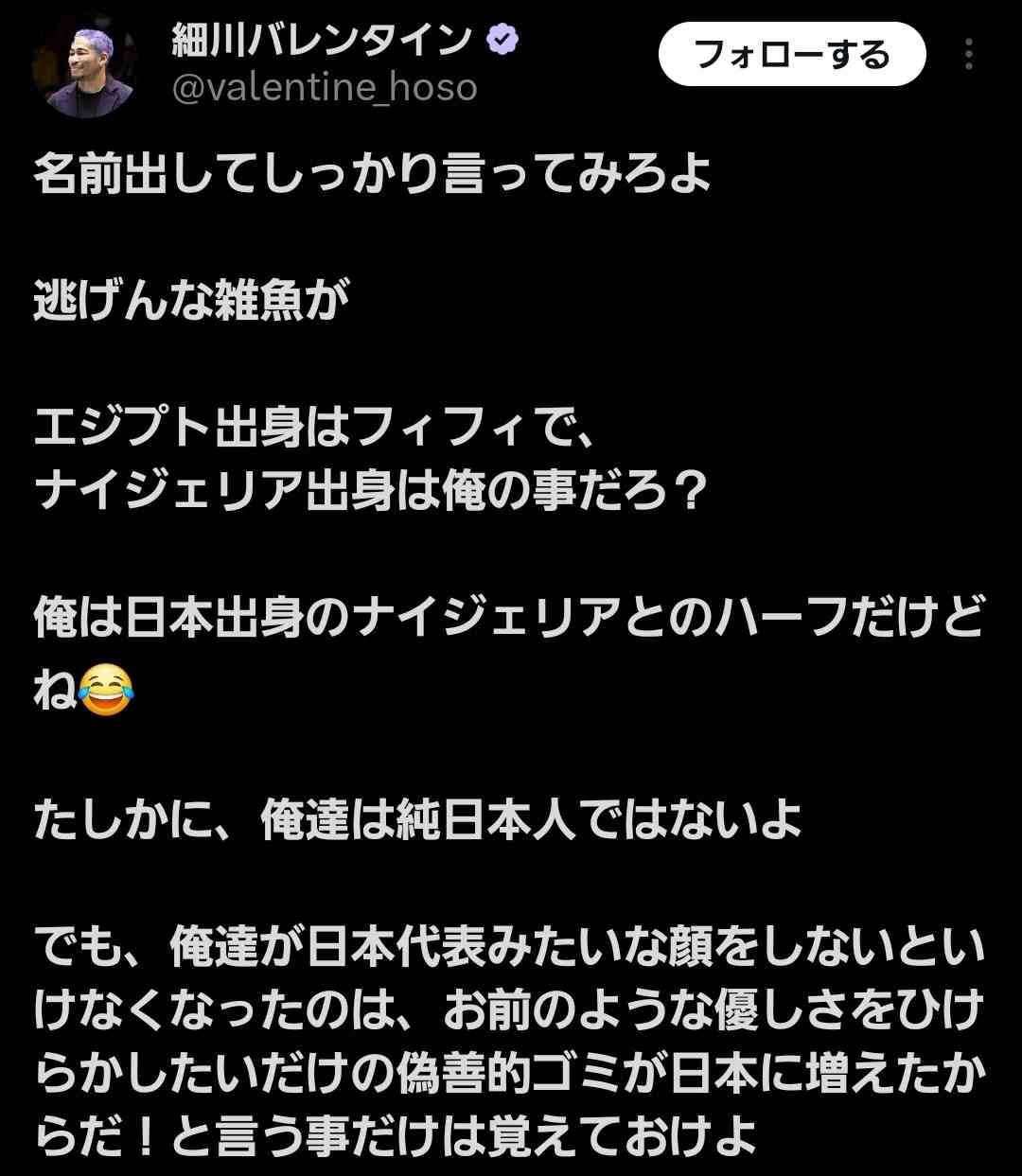 ナイジェリア出身は俺の事だろ?俺は日本出身のナイジェリアとのハーフだけどね😂