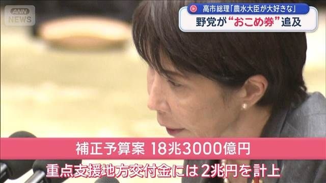 高市早苗総理「農水大臣が大好きなおこめ券」 野党が”おこめ券”追及