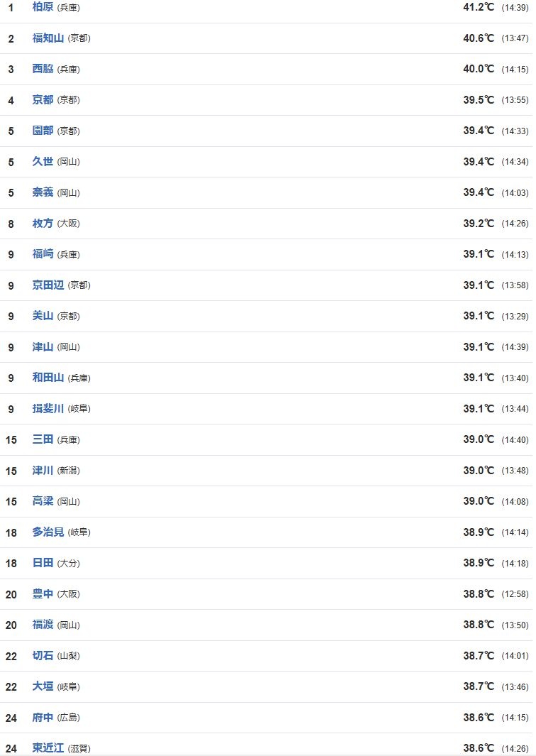 5 兵庫県 丹波市 柏原(カイバラ) 39.3 ] 13:57]1 兵庫 柏原 14:39 41.2℃