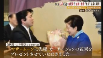 ニュー速+ 自民・比嘉奈津美議員、演台に立つ後ろに旧統一教会創始者夫妻の写真「統一教会とわからなかった」「写真を見てもわからなかった」