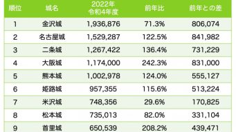 ニュー速 日本のお城の入場者数。国宝とか現存天守閣とか関係なかった