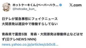 ニュー速 日テレ「震度6なのに大間原発は停止しないんだって!」建設中で稼働すらしてないんだが→しれっと削除