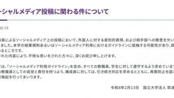 talkニュー速+ 【茨城】筑波大教員がSNSで外国人差別投稿 HPで謝罪、同大が調査へ
