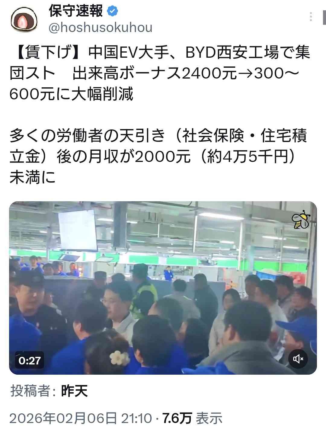 こんなの支那では何千件もあるんでふーんとしか言いようがない😅 - 11 : 2026/02/06(金) 22:55:06.26