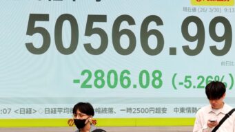 ニュー速+ 【株価】日経平均が大幅続落、一時2500円超安 中東情勢の悪化懸念