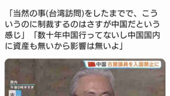 ニュー速 古屋氏「当然の事(台湾訪問)をしたまでで、こういうのに制裁するのはさすが中国だという感じ」