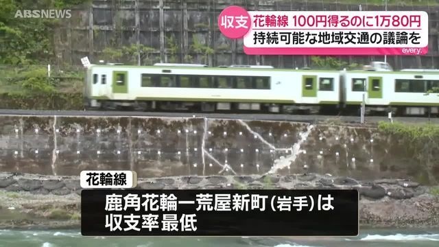 花輪線では100円の収入を得るために1万80円の経費がかかっている区間もありました。