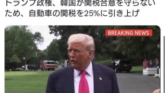 ニュー速 トランプ政権、韓国が関税合意を守らないため、自動車の関税を25%に引き上げ