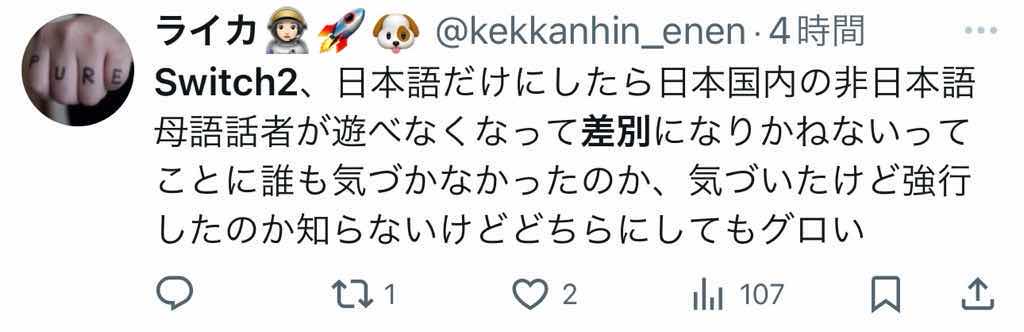 Switch2は差別と外人が暴れる 日本語49800円 外國語69800円