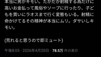 ニュー速 女性「本当に男がキモい。射精のためだけにお金払って風俗行ったりその精神が本当無理」