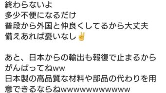 ニュー速 パさん「あのさあ、中国からの輸入止められたら終わる国なんだよ。イキってる場合かよ。」