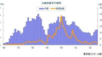ニュー速+ 【2025年の企業倒産】2年連続で1万件超え「人手不足」倒産が最多に