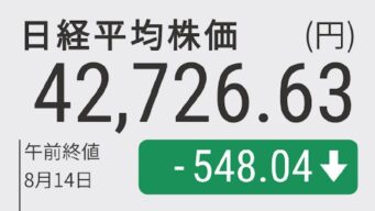 ニュー速+ 日経平均終値、223円安の3万9587円…「トランプ関税」交渉に警戒感