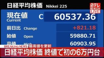 ニュー速+ 【株価】日経平均、再び6万円台 一時600円高で取引時間中の最高値