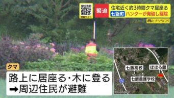 ニュー速+ 【北海道】七飯町でヒグマ1頭駆除 3時間近くハンターらとにらみ合い ナシを食べたり木登りしたり 畑の中に住宅が点在する場所