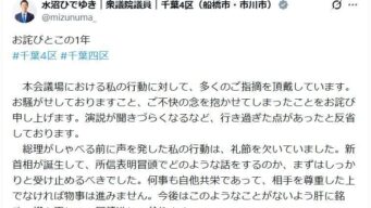 ニュー速 千葉4区(船橋、市川)の立憲・水沼秀幸衆院議員がヤジを謝罪