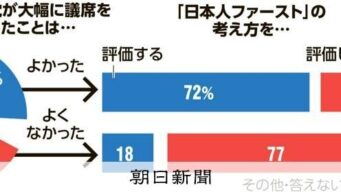 ニュー速 参政党議席増「よかった」52%「よくなかった」34% 日本人ファースト「評価する」48%「評価しない」41%