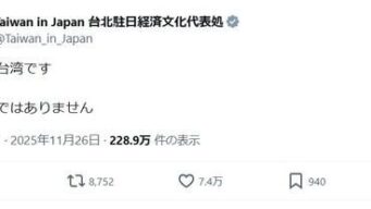 ニュー速 「台湾は台湾です。台湾省ではありません」台湾駐日外交窓口が投稿 駐日中国大使の投稿に反発か