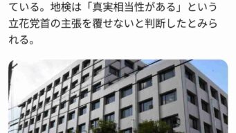 ニュー速 人「N党立花は兵庫県知事選でデマ流した!!」検察「真実相当性あるから不起訴」